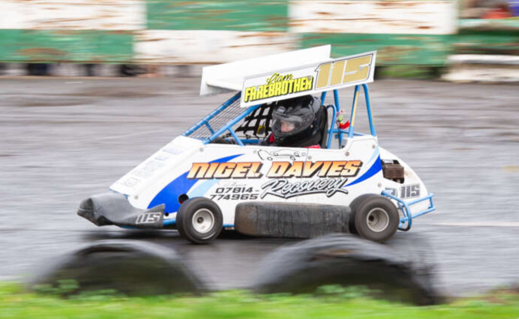 These little vehicles are based on a junior kart chassis powered by a 50cc Honda engine. Complete with a roll cage and racing aerofoil. This will be their first experience of real motor racing on the small ovals. The formula is for 6-11 year olds. Strictly non-contact.